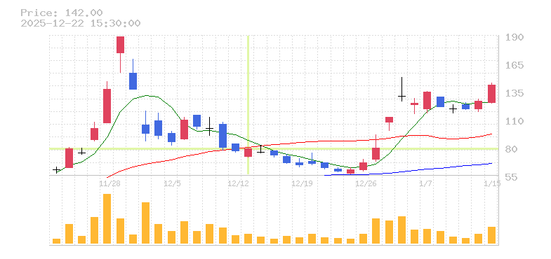 | 株価:172円(40.98%)前日比:+50 | ||||
