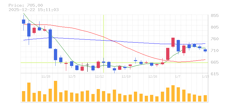 | 株価:657円(-0.59%)前日比:-3.9 | ||||