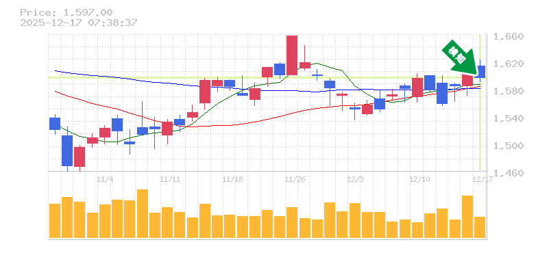 終 値:1597円
