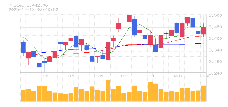終値:3442円