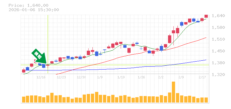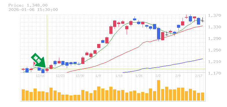 株価は最近、1360円台で安定して推移しており、過去30日のデータからも明らかに上昇トレンドが見受けられます。特に、移動平均線の動きからも、短期的な上昇が期待できる状況です。高値圏での推移は心理的な強さを表し、投資家の信頼感を高めています。