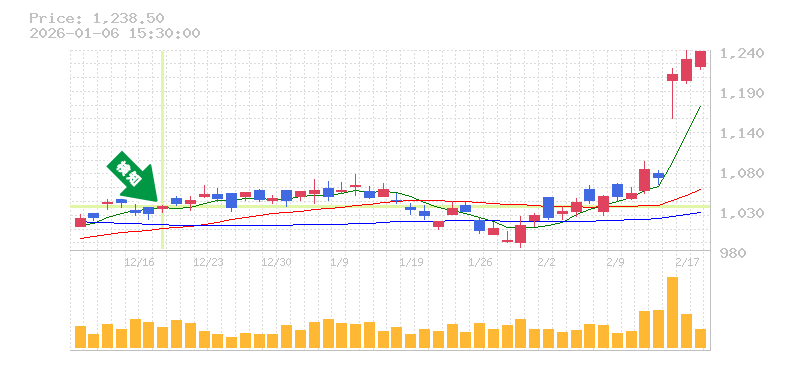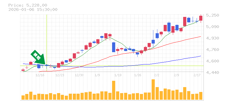最近の株価データを見ると、当銘柄は上昇トレンドにあり、移動平均線もそのトレンドを支持しています。短期的には、株価が安定して高値を更新している姿勢が見受けられ、投資家にとってポジティブなシグナルといえます。特に、過去数日間での終値が高値を維持しており、強い買い圧力が感じられます。これを背景に、今後もさらなる上昇が期待できるでしょう。