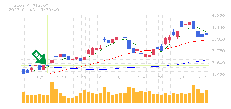 現在の株価は上昇トレンドにあり、最近の価格動向は非常にポジティブです。移動平均線も、短期的なMAが中期や長期のMAを上回っており、強い上昇圧力を示唆しています。このような状況は、投資家にとって買いのタイミングとして捉えられることが多く、さらなる上昇の期待が高まります。
