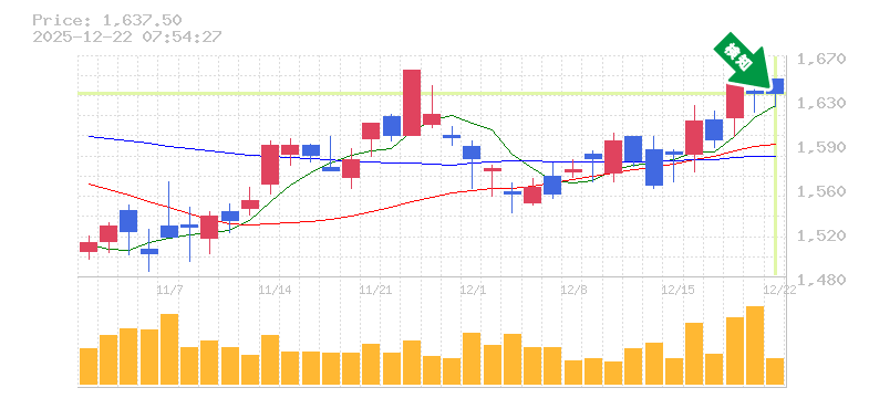 終 値:1637.5円