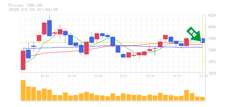 終 値:386円