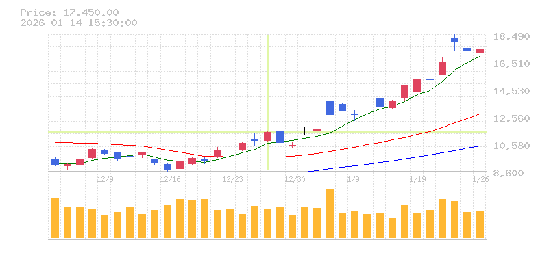 | 株価:17,800円(1.8%)前日比:+315 | ||||