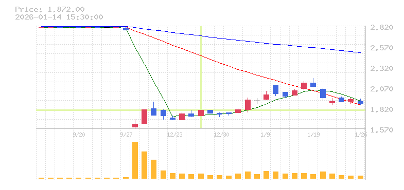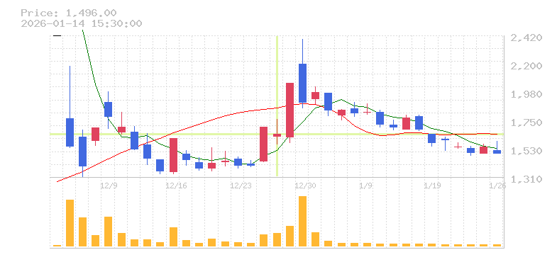 | 株価:2,383円(20.17%)前日比:+400 | ||||