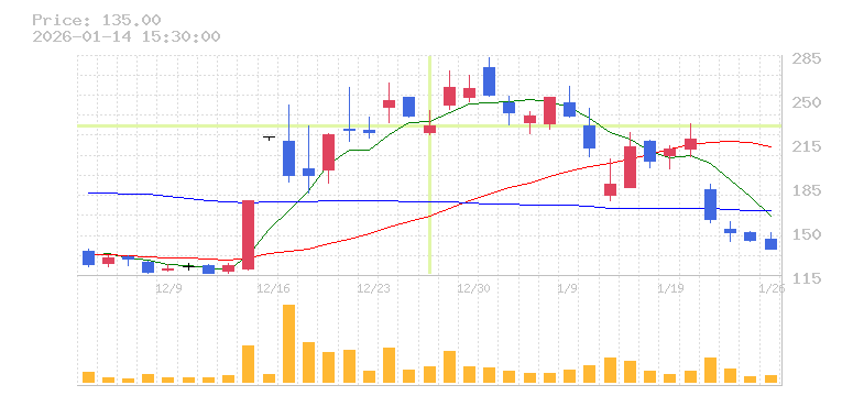 | 株価:230円(-3.36%)前日比:-8 | ||||