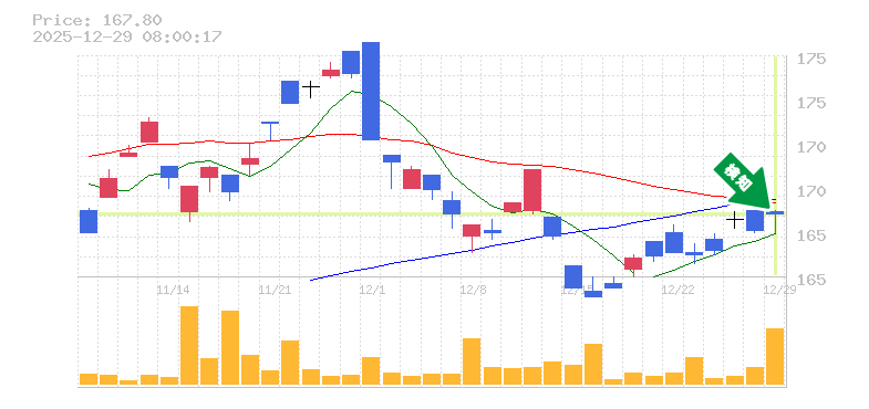 終 値:167.8円