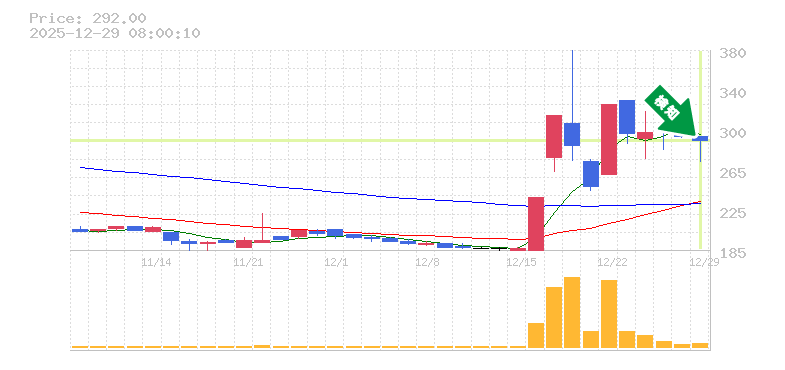 終 値:292円