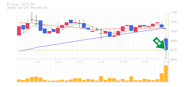 終 値:673円