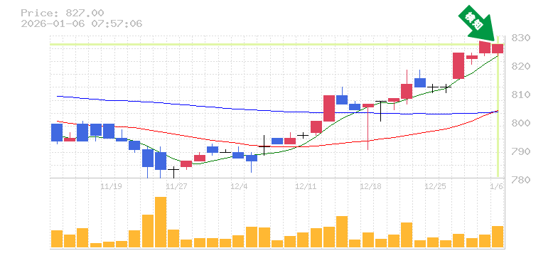 終 値:827円