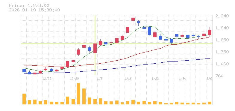 | 株価:1,530円(12.33%)前日比:+168 | ||||