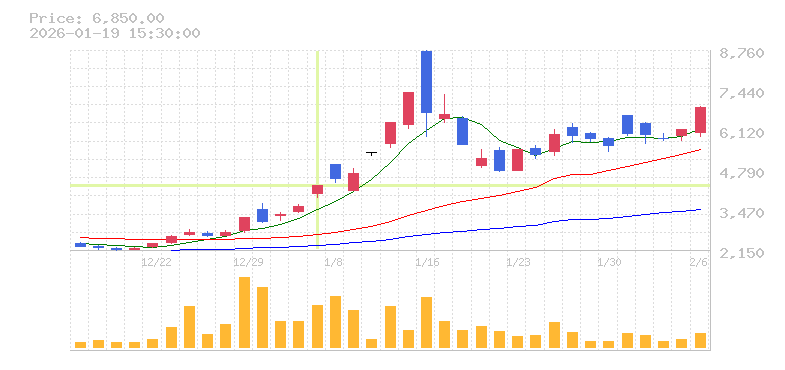 | 株価:4,285円(19.53%)前日比:+700 | ||||