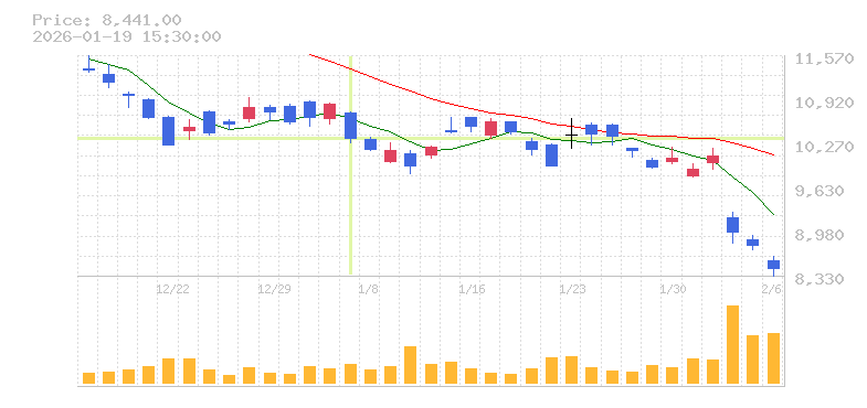 | 10,720円 | 10,730円 | 10,275円 | 10,350円 | 8,142,200 |