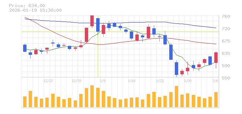 | 株価:705円(-7.28%)前日比:-55.3 | ||||