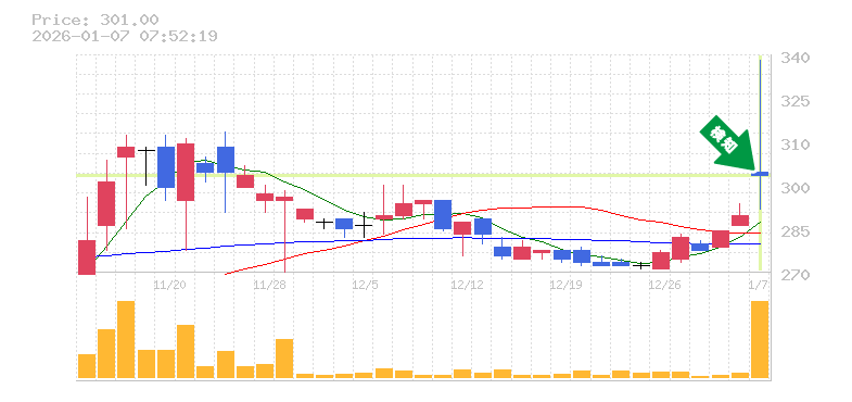 終 値:301円