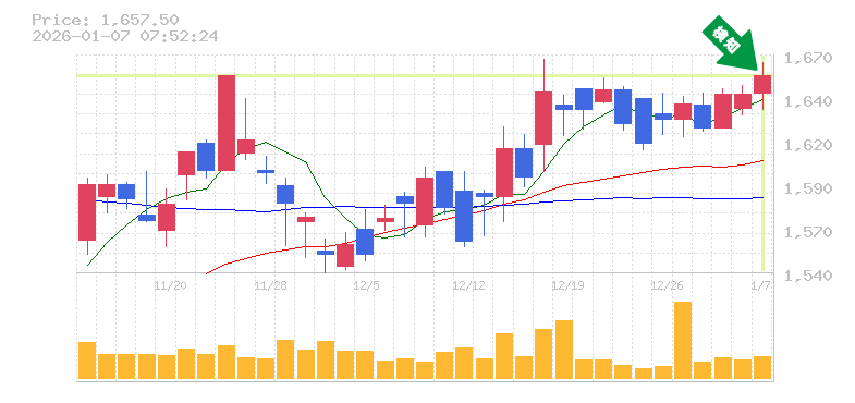終 値:1657.5円