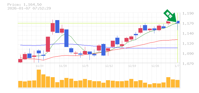 終 値:1164.5円