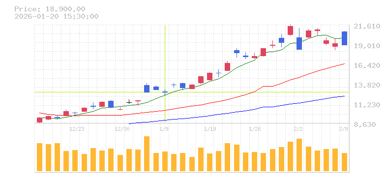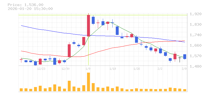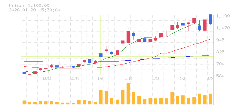| 株価:1,904円(10.83%)前日比:+186 | ||||