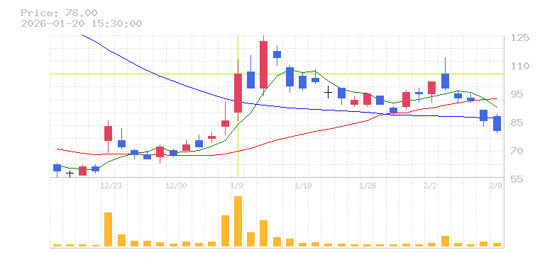 | 株価:106円(27.71%)前日比:+23 | ||||