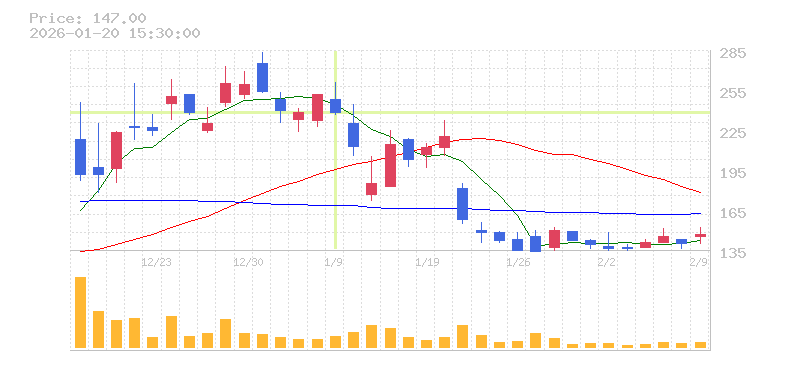 | 株価:238円(-5.56%)前日比:-14 | ||||