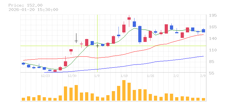 | 株価:119円(-1.65%)前日比:-2 | ||||