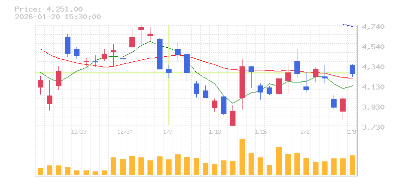 | 4,300円 | 4,338円 | 4,205円 | 4,263円 | 46,487,100 |