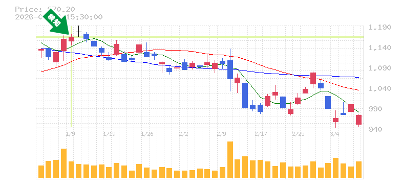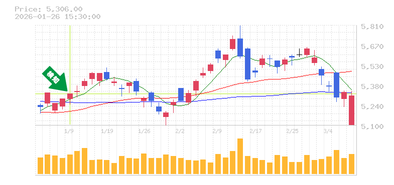 損切り価格の目安は、現在の株価から約300〜400円下の水準を想定することがリスク管理の一環として有効です。これにより、不測の事態に備えることができますが、上昇トレンドにある現在の価格動向を踏まえれば、短期的な調整はあっても、長期的にはさらなる成長の可能性が期待できそうです。