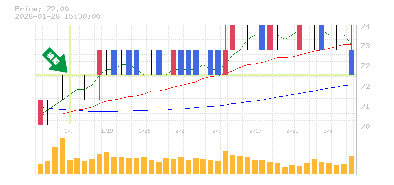 リスク管理の観点から、損切り価格はおおよそ70円前後を目安に設定することをお勧めします。これにより、大きな損失を避けつつ、トレンドの変化に柔軟に対応できます。また、出来高の増加が見られることから、買いの勢いが強まっていることも評価ポイントです。