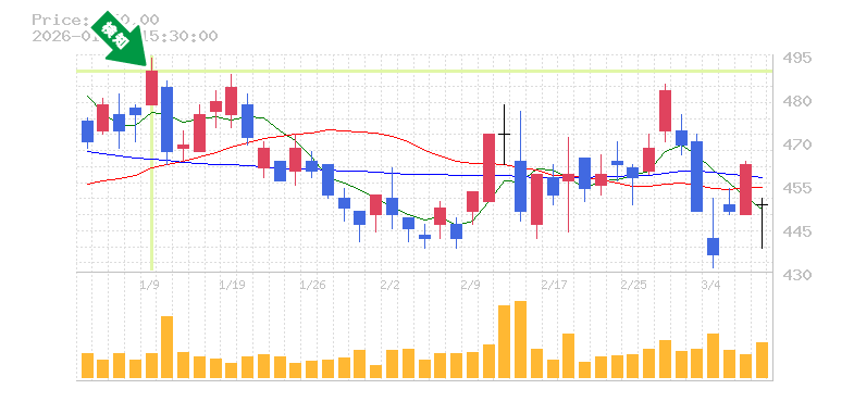 過去のデータから推測すると、リスク管理のためには、損切り価格をおおよそ440円前後に設定することが妥当と考えられます。この水準を下回る場合、トレンドが変わる可能性があるため、一度冷静に見直す必要があります。特に、最近の高値490円に近い水準での推移は、上昇の勢いを感じさせます。