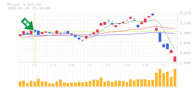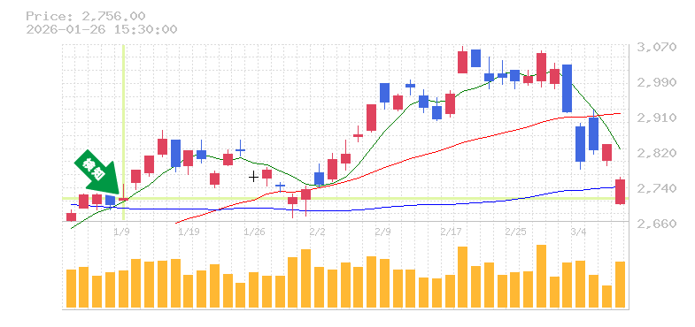 リスク管理の観点から、損切り価格は2950円程度を目安に設定しておくと安心です。この水準を下回る場合、トレンドが変わる可能性があるため注意が必要です。全体的に、安定した出来高を伴いながらの価格の動きは、投資家にとって魅力的なポイントです。今後の成長に期待しつつ、慎重な取引を心がけましょう。