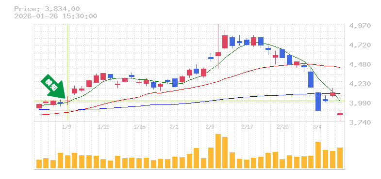 リスク管理の観点では、過去の安値を基にしたおおよその損切り価格を設定するのが良いでしょう。例えば、3700円前後を目安にすると、相場の動きに対する安全策として機能しそうです。この価格帯を下回る場合には、見直しを検討することをお勧めします。