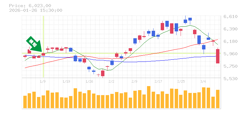 損切り価格の目安としては、最近の安値を考慮し、5860円付近を設定するのが良いでしょう。この水準を下回ると、トレンドが転換する可能性があるためです。リスク管理の観点からも、損切りラインを意識しつつ、上昇トレンドを楽しむ戦略が有効です。