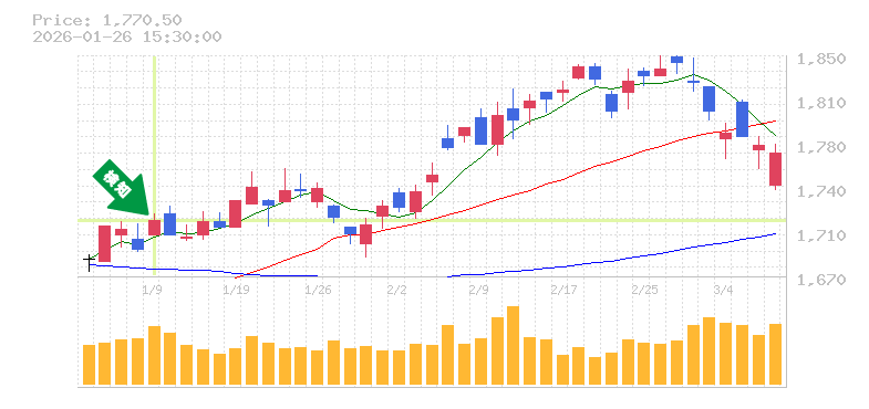 リスク管理の観点からは、過去の安値を考慮すると、損切り価格を約1490円に設定するのが一つの目安です。このラインを下回った場合は、トレンド転換の兆候と見なすことができます。今後の展開としては、さらなる上昇が期待できる一方で、ボラティリティに注意しつつ、適切なタイミングでのエントリーを心掛けることが重要です。全体的に、買いのチャンスが広がっていると評価できます。