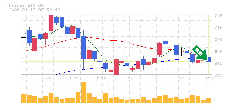 終 値:619円