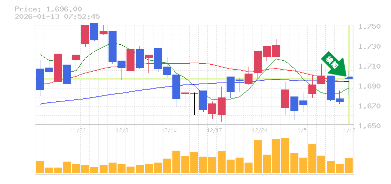 終 値:1696円