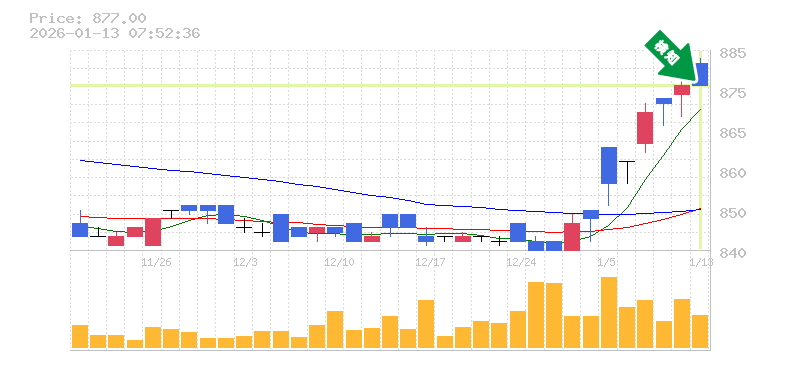 終 値:877円