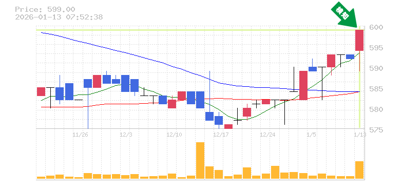 終 値:599円