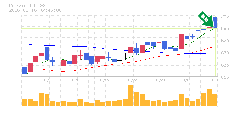 終 値:686円