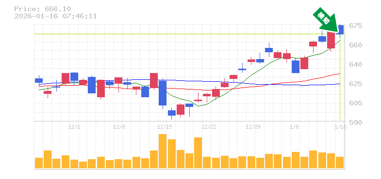 終 値:666.1円
