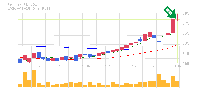終 値:681円