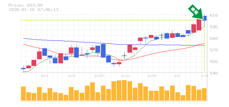 終 値:603円
