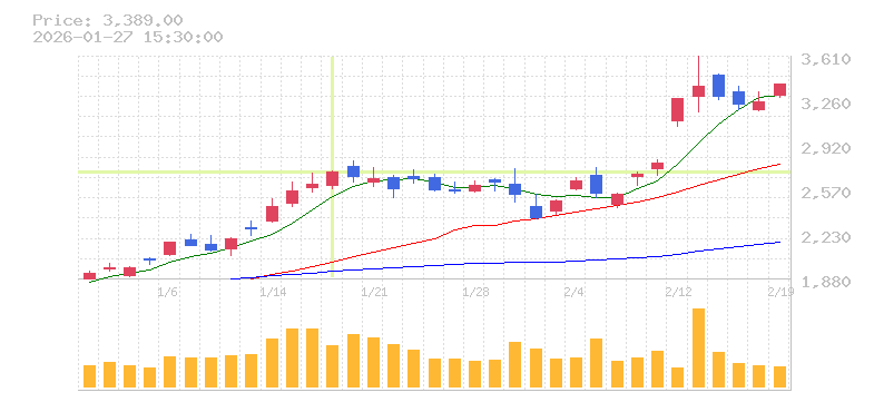 株価:2,709円(3.79%)前日比:+99