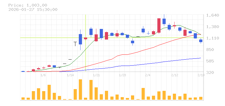 株価:1,100円(15.79%)前日比:+150