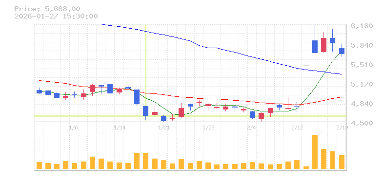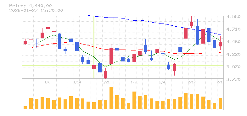 株価:4,598円(-4.31%)前日比:-207