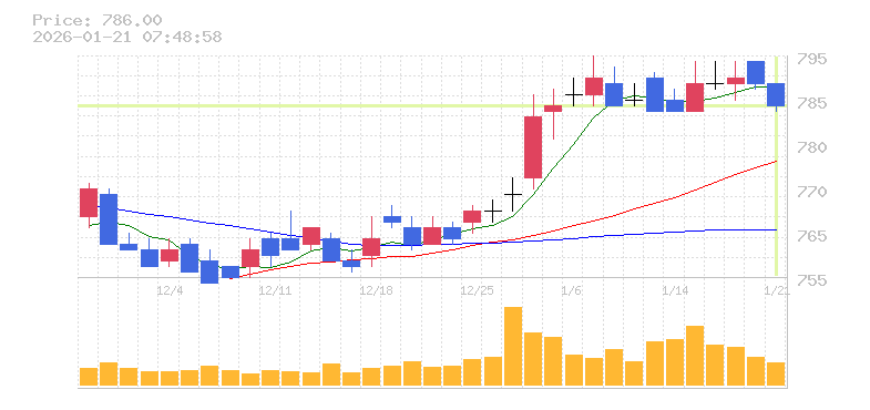終値:786円
