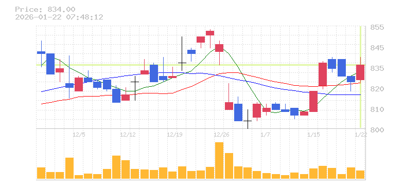 終値:834円