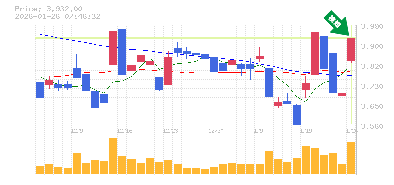 終 値:3932円