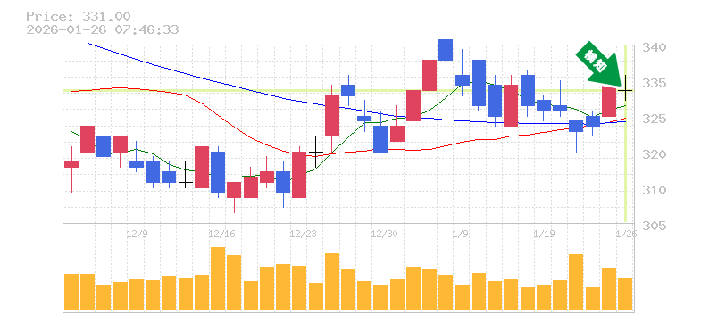 終 値:331円